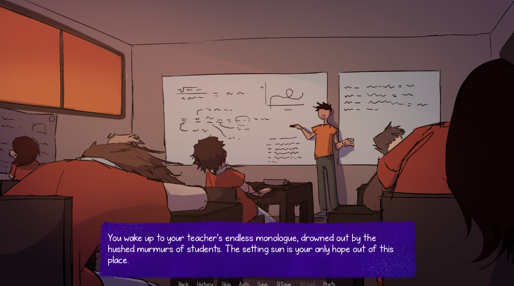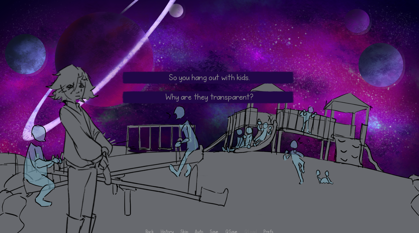 A multiple-ending game that relies on looping to progress the story. Originally made as a personal project for my friends, posting it here for them (and you too, I suppose...). Some assets are still in development.